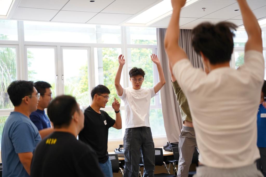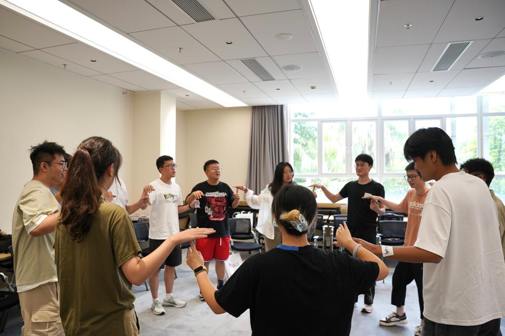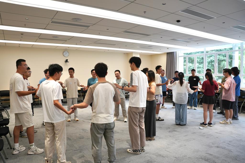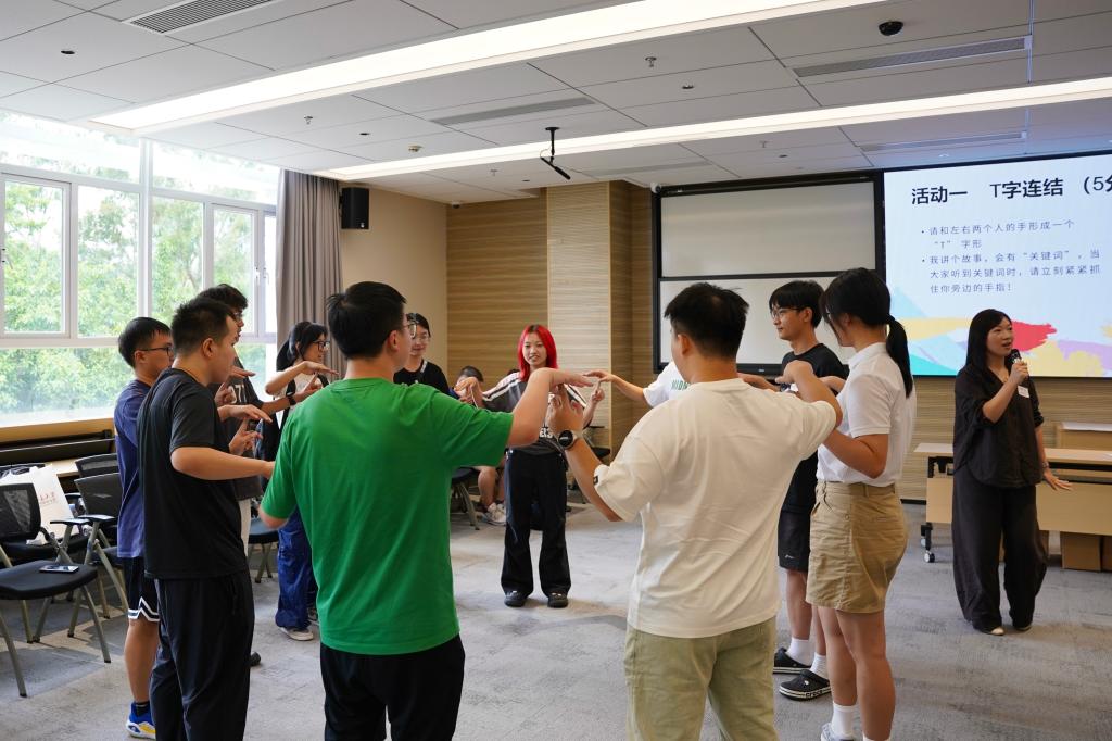 The first activity, “T-Shape Connection,” quickly ignited the atmosphere. Students linked hands with the two classmates beside them in a “T” shape, grabbing their neighbors’ fingers upon a signal. This fast-paced, laughter-filled icebreaker not only shattered the initial silence and unfamiliarity but also helped everyone relax, with increasing eye contact and smiles.