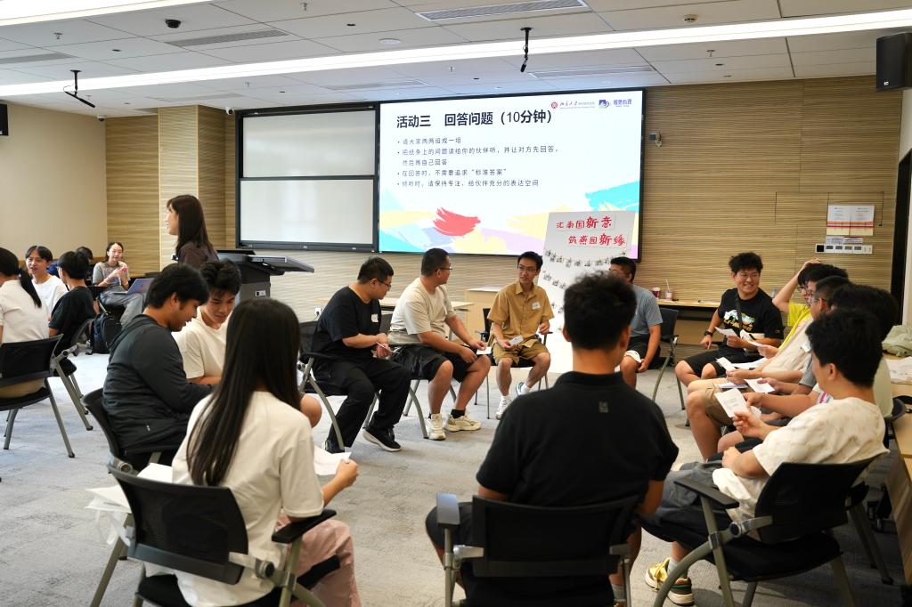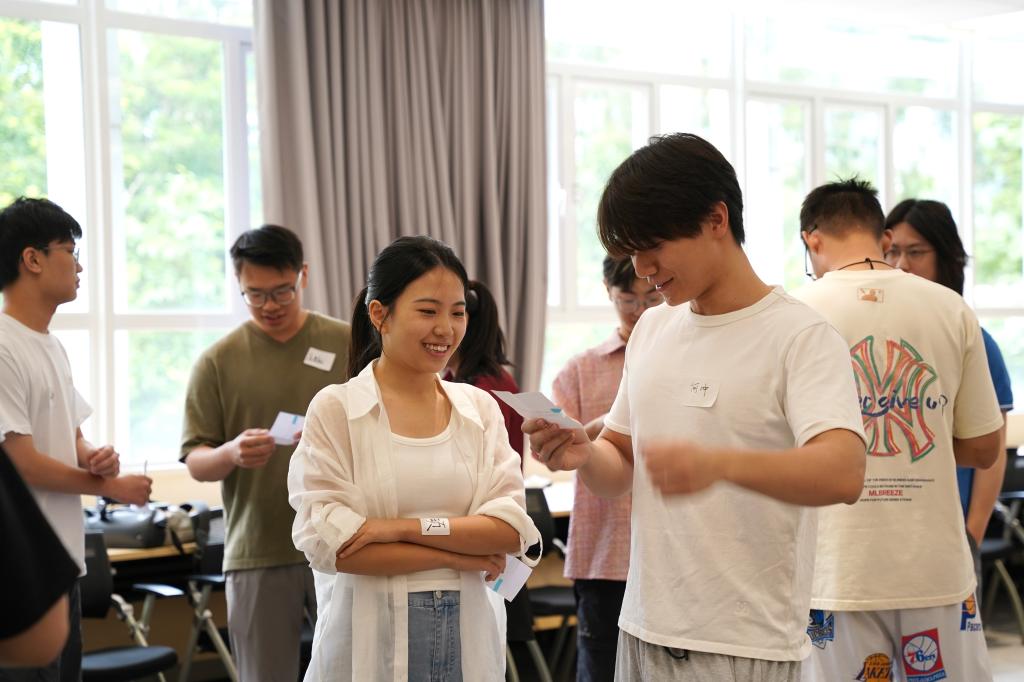 The session then moved to deeper exchanges. In pairs, students discussed questions from the cards they had drawn earlier, which were tailored to academic life and personal reflections. These prompts encouraged sharing genuine attitudes, experiences, and even uncertainties. Through attentive listening and sincere responses, students not only exchanged stories and perspectives but also quietly built trust and resonance—transforming surface-level greetings into authentic understanding and empathy.
