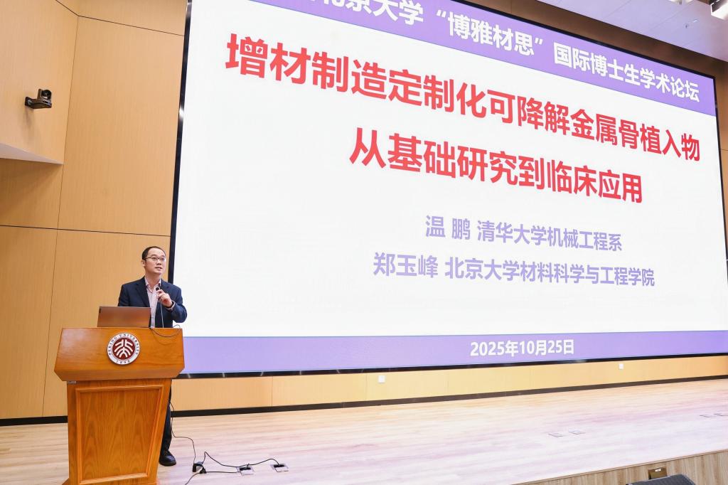 Associate Professor Peng Wen from Tsinghua University presented "Additive Manufacturing of Customized Degradable Metal Bone Implants," vividly showcasing a case where 3D printing technology was used to create a degradable metal pivot for a young patient, successfully repairing bone defects and highlighting breakthroughs in precision medicine.