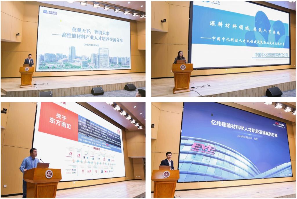 On the afternoon of the 26th, a career development dialogue for young students focused on diversified career paths in the materials field. Representatives from companies such as China National Machinery Industry Corporation, Sinochem, Oriental Yuhong, EVE Energy, and BOE were invited to share industry trends, talent needs, and training systems, helping young students broaden their career horizons.