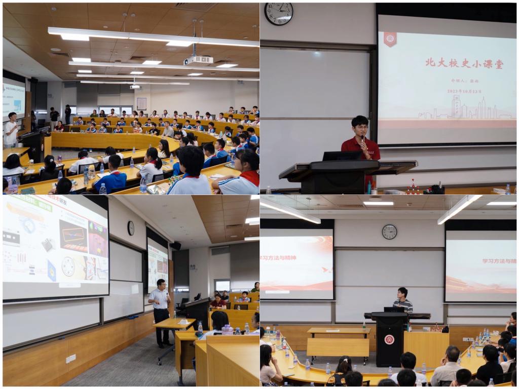 副院长、教工党支部委员肖荫果老师对丽湖学校师生们的到来表示热烈的欢迎,并作简要致辞。随后他开始主题为《用中子敲开微观世界的门》的中子科普趣味科普小课堂,内容涵盖探索未知世界的尺度、探索未知世界的尺度和中子的应用,从宏观到微观、建立结构与性能之间的关系、中子散射实验方法等方面深度启发同学们对探索微观世界的好奇心。2022级张雨同学讲述北大校史小课堂,从北大的前世今生介绍了百年北大的创建历程和办学理念以及北大优秀的科学家和教育家,增进同学们对北大的了解并鼓励大家心怀梦想,坚持梦想。2022级丁浩文同学结合自身的求学经历分享学习经验和方法,抛出“为什么而学习?”的话题启发思考,建议同学们建立学习体系以便更好的学习。2023级焦子勤同学介绍神奇的材料学,以电影《SPIDER-MAN》片段中的黑科技为引子,讲述蜘蛛侠的蜘蛛丝与自然界的蜘蛛丝之间的区别以及优缺点。趣味科普小课堂过程中穿插趣味问答环节,同学们积极参与,踊跃发言,现场师生热情互动,激发了对科学的浓厚兴趣。