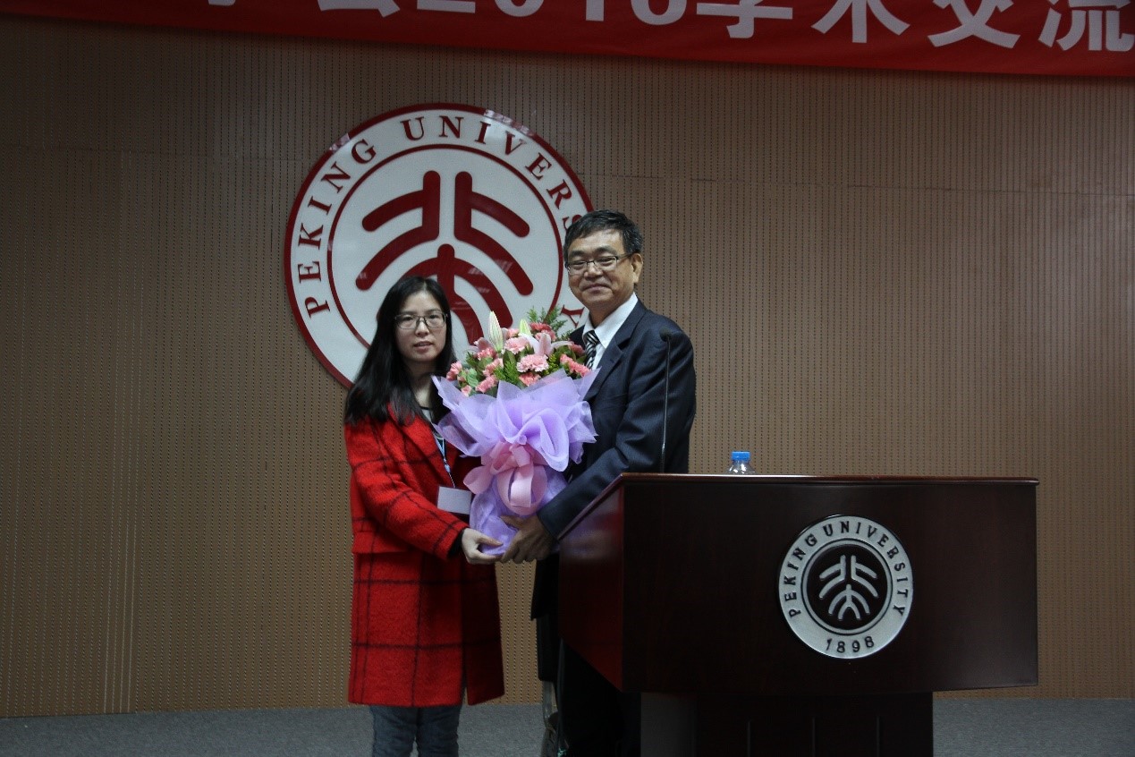 代表向张教授献花表示欢迎