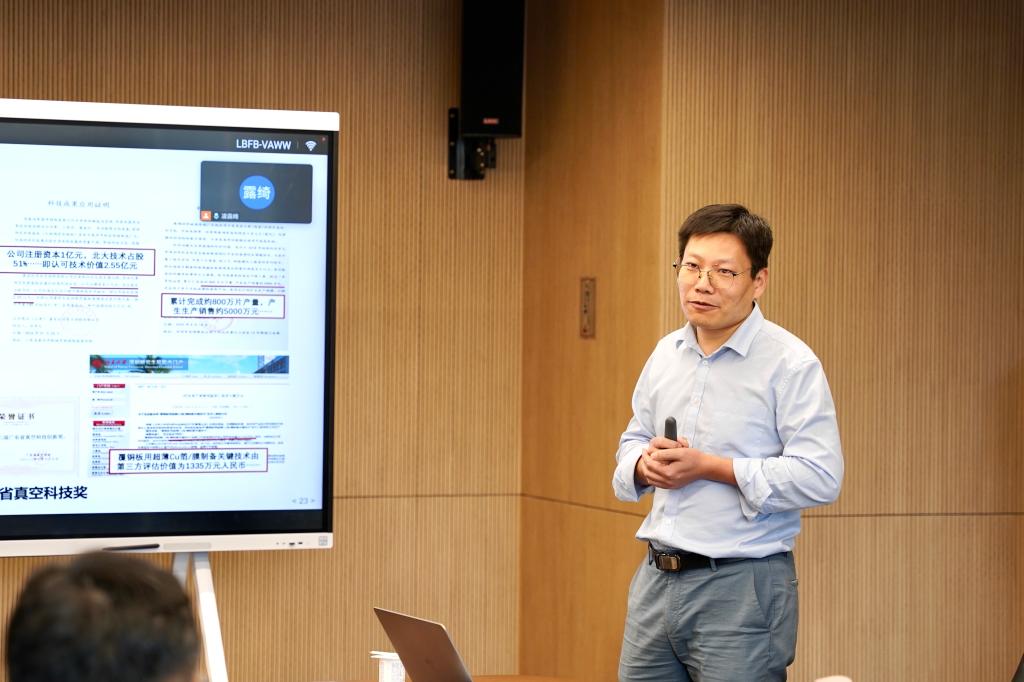 副教授吴忠振老师以“离子沉积技术、装备与应用研究”为题进行了系统性成果汇报。该报告从人才培养和教育教学工作、科学研究突破、社会服务情况三个维度系统梳理近年来的创新成果,重点介绍了高纯度大束流离子流获取技术、大束流离子输运与控制等领域的代表性工作。特别是在工程应用方面,详细展示了高功率磁控溅射阴极、离子源及成套真空设备研发,以及陶瓷封装基板、复合集流体和软基体表面复合强化新工艺等产业化成果。