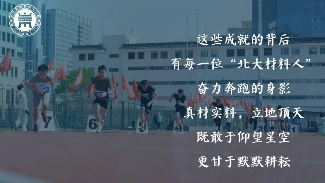 这些成就的背后,有每一位“北大材料人”奋力奔跑的身影。你们用一份份实验数据、一篇篇研究论文、一项项科技成果,共同回答了“材料人”的时代之问,也在潜移默化中塑造了属于北大材料人的精神底色:真材实料,立地顶天;既敢于仰望星空,更甘于默默耕耘。我们坚信,从这片浸润着创新精神与务实风格的学术热土走出的青年,必将以“中坚力量”的姿态挺立时代潮头。你们镌刻的每个奋斗坐标,都将续写着北大材料精神的时代注脚。