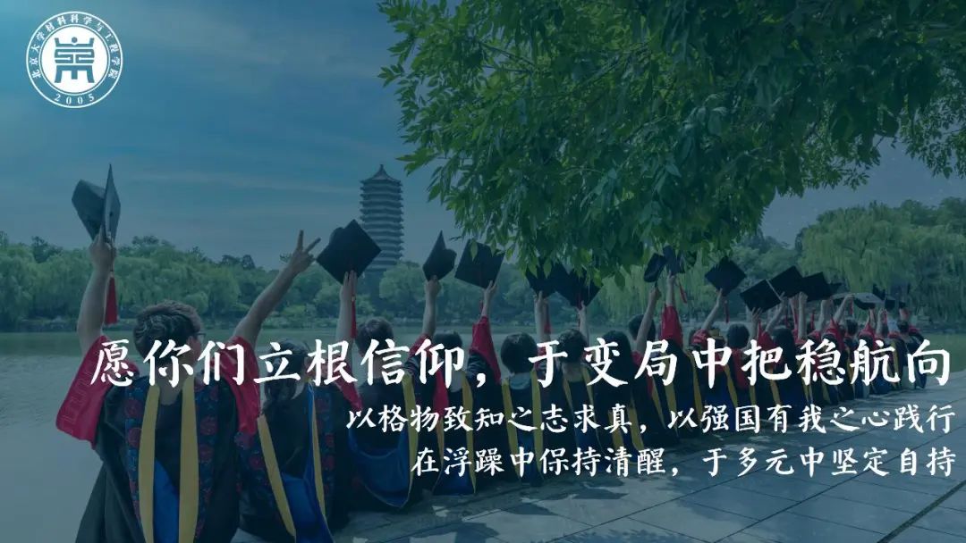 北大之大,在于家国天下;材料之强,在于强国重器。今天你们以“北大材料人”的身份出发,未来也必将以“国家栋梁”的姿态归来。“乘风好去,长空万里,直下看山河”,无限风光仍在前路,但无论走到哪里,请记得:新番