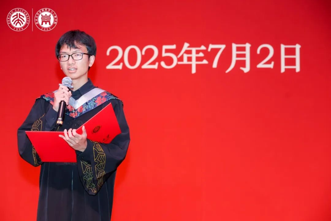 向毕业生表示热烈祝贺,向老师和家长致以敬意,向关注和支持学院发展的社会各界朋友表示感谢,并对即将踏上人生新征程的同学们提出三点期望,希望毕业生们能够立根信仰,于变局中把稳航向,以格物致知之志求真,以强国有我之心践行,在浮躁中保持清醒,于多元中坚定自持;厚积本领,于实干中锻造锋芒,跳出“理论舒适区”,以实践为炉、以问题为砺,在失败中“增韧”、在迭代中“提强”;融通协同,于时代中共塑未来,以北大材料的温度与坚实,为这个不确定的世界带去确定的价值。