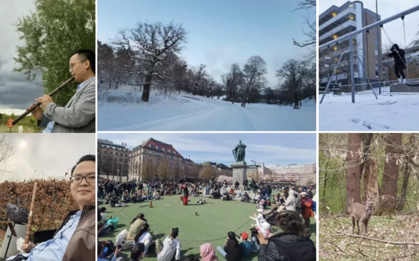 在国外公园练习笛子/洞箫被小朋友投喂零食,瑞典雪后漫步,雪中荡秋千,斯德哥尔摩国王公园街头艺术,森林中散步时偶遇的小鹿