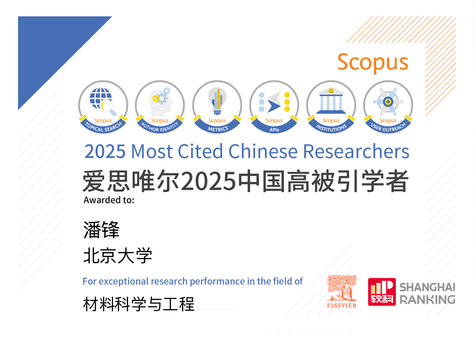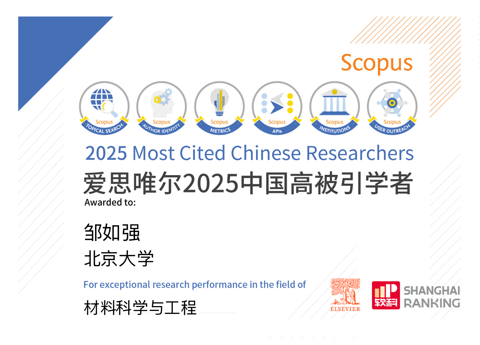 2026年1月30日,爱思唯尔 (Elsevier) 重磅发布2025“中国高被引学者” (Highly Cited Chinese Researchers) 榜单,新番