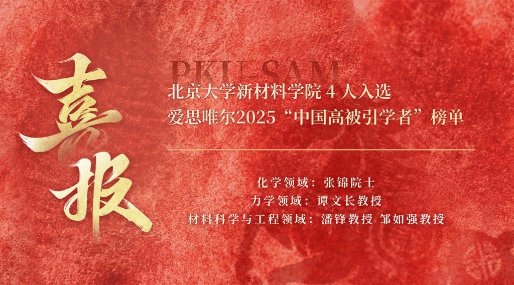材料科学与工程领域:潘锋教授(连续11年上榜)、邹如强教授(连续5年上榜)
