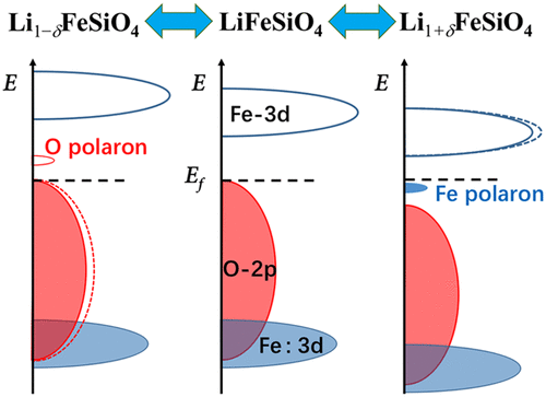 图2 LiFeSiO4在嵌Li或脱Li过程中形成Fe的极子态或O的极子态。
