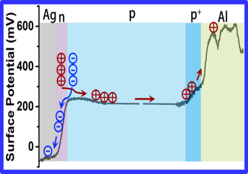 潘锋教授课题组将提高硅太阳能电池效率的机理研究及开发新型的银栅线的新技术和新材料作为重要的研究方向,并作为所承担的广东省创新团队重大项目的核心任务之一。在提高硅太阳能电池效率的机理方面,研究团队是国际上首次利用原子力显微镜的开尔文探针(Kelvin probe force microscope,KPFM)对晶体硅太阳能电池不同界面之间的表面电势进行探测,发现了不同界面之间的表面电势变化与晶体硅太阳能电池转换效率之间的关系。这一发现使得团队对晶体硅太阳能电池的工作原理有了更深刻的认识,对改善晶体硅太阳能电池性能、提升太阳能转换效率提供了重要的理论依据。相关研究成果近期发表在国际能源材料领域顶级期刊Nano Energy (Nano Energy 36 (2017)303-312, 影响因子IF=11.6)。该工作由潘锋教授指导,14级硕士生陈勇吉和博士后张明建共同完成。
