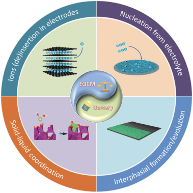 图1. 电化学石英晶体天平在电池领域研究中的应用示意图