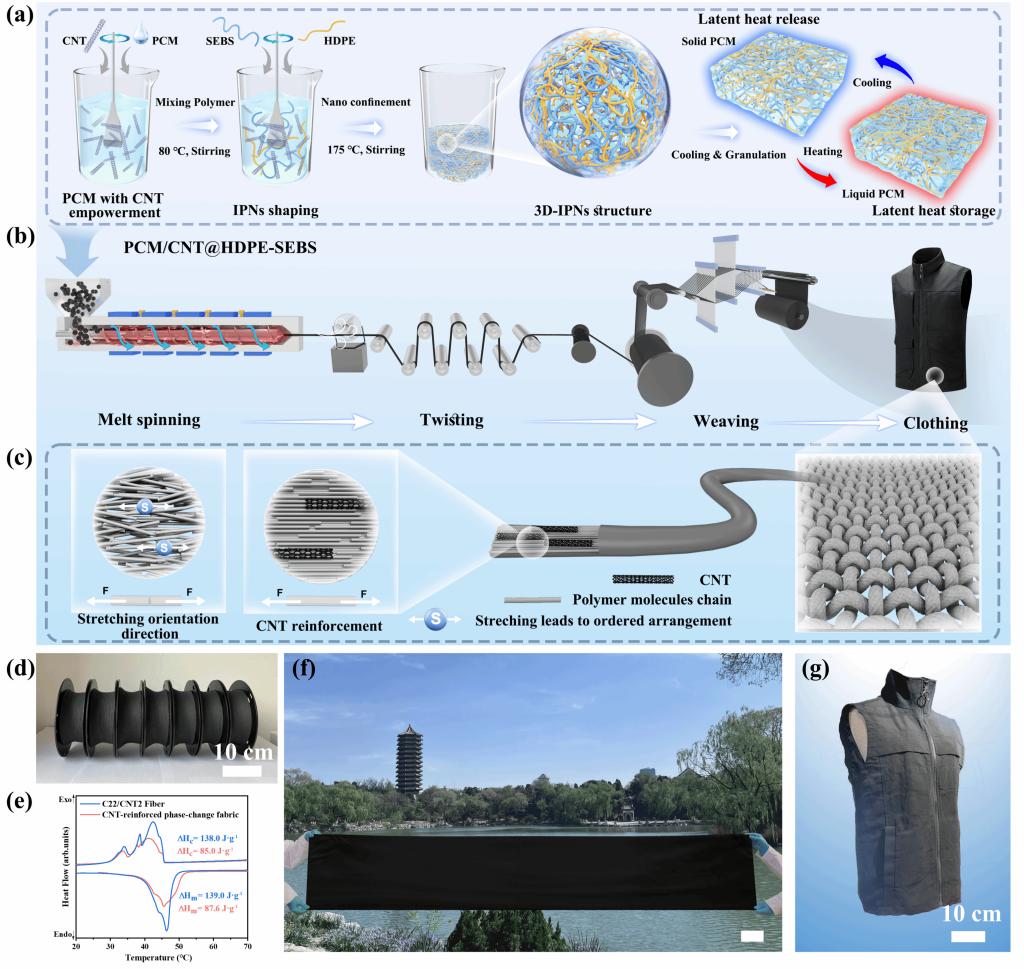 相关成果以“Ultralow CNT-reinforced phase-change fibers for scalable wearable thermoregulation”为题,发表于《Nature Communications》。