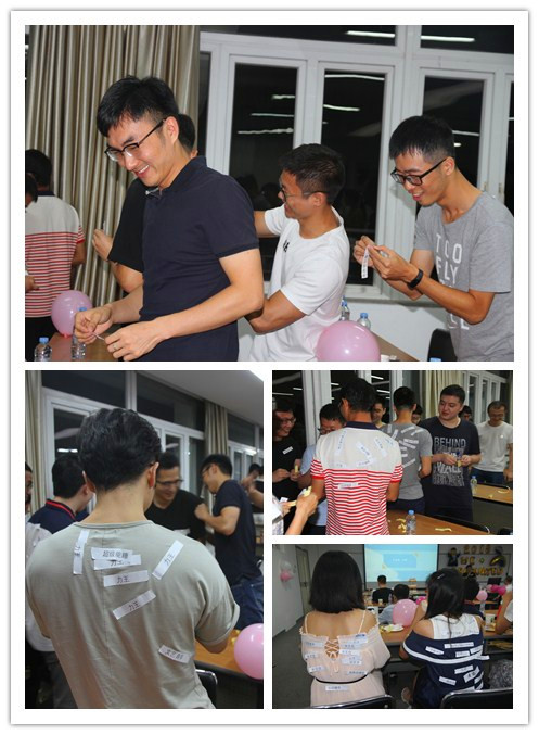 轻松的游戏环节:大家把印有各种特征词语的标签纸贴在自己认为合适的同学或者老师的后背上,作为自己的评价;而被写者需要读出所有的评价并挑选感想深刻的进行评论,整个游戏环节欢快有趣,笑声不断,掌声连连。