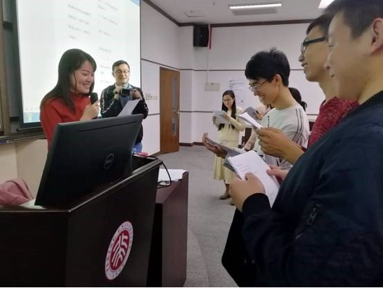 的学生们相聚一堂,排练起了题为《我骄傲,我是材料人》的诗歌朗诵节目。排练老师耐心的为每位同学指导发音,断句;大家也都练的特别起劲,丝毫不觉得枯燥;即使在休息的间隙,大家的朗诵热情也依然高涨,相互之间纠正发音,互相提高。