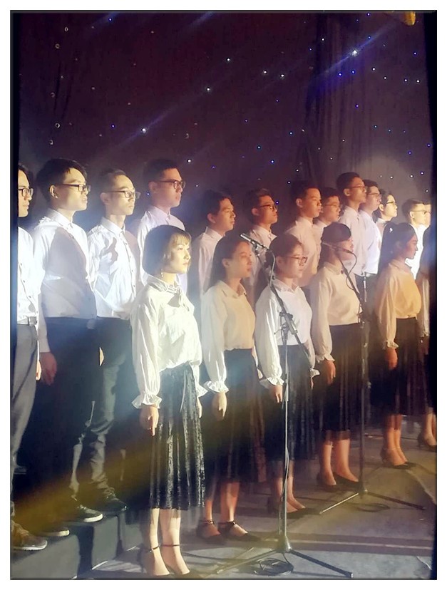 我们的朗诵节目气势恢宏,慷慨激昂,热血沸腾,赢得台下热烈的掌声。