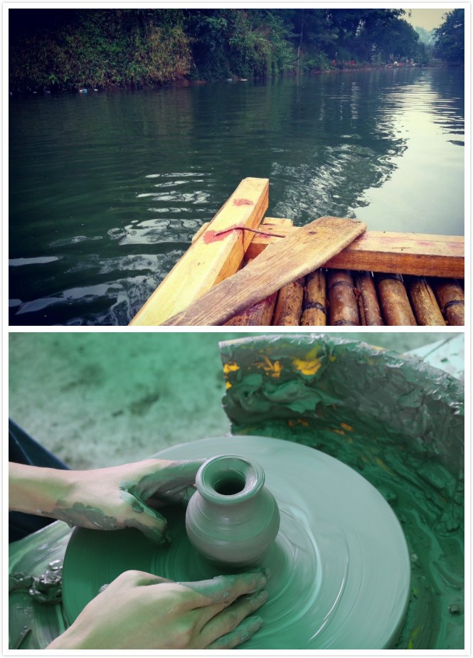 饱餐之后,自由活动。小筏绿水漂,陶艺泥塑雕。微雨中,竹筏泛舟,颇有“山随明晦姿横出,舟入渺茫诗渐成”之感。同学体验陶艺制作,做出自己喜欢的作品,陶瓷作为中国的一种传统文化,体会其中博大精深。