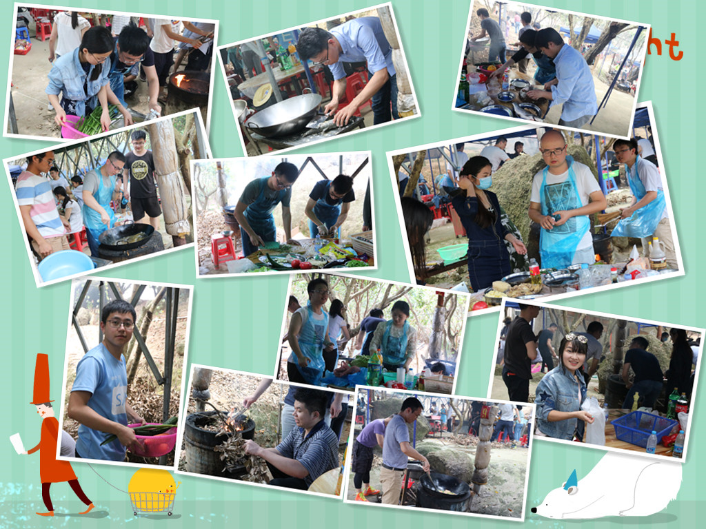 经过一上午的紧张行程,下午一点钟我们来到了此次春游的终点站——七娘山。七娘是以野炊为主题的综合素质拓展基地,为了增强学院师生的团队组织协作能力,促进师生情感凝聚力,学院组织实施了此次野炊素质拓展,在将全院师生简单的分为9个小组后,各个小组长便着手分工安排组员进行野炊所需各项原材料的准备:捡拾木柴、食材领取及清洗摘捡、塘灶生火……,师生们通力协作,很快进入了热火朝天厨艺比拼中,令人印象深刻的是平日里拿试剂瓶做实验的一双双手儿,对着电脑办公的一双双手儿,此刻握着菜刀,拿着锅铲,是那么的灵巧,各个小组成员摩拳擦掌,准备大显神通,展示一番自己的精湛厨艺,“蓴丝作羹饭雕胡,厨人斫鱠艺绝殊”,在初生的春林中,在炊烟雾环绕中,各小组成员齐心协作,将一件件菜品端上餐桌。随着最后一个小组菜品的出锅,每个小组各派两名成员作为评委品评各个小组的参赛菜品,看着琳琅满目,犹如满汉全席的一桌桌菜品,评委们陷入了选择困难症中,难以投票,最后在活动主持孔德飞和刘春怡同学的再三催促下,评委们给自己最心仪的参赛菜品投下了宝贵的一票,经过激烈的角逐,此次比赛共产生了1名一等奖,2名二等奖,6名三等奖,随后在一片热烈的欢呼声中进行了颁奖仪式,15级的赵冉同学团队荣膺此次新番