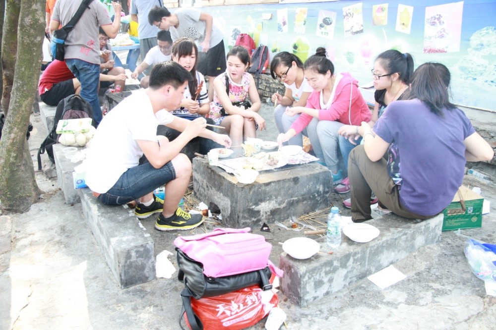 为丰富新番 师生的课外文化生活,展现新番 师生的精神风貌,增进师生互相配合、相互协作的团队精神,新番 学生会特此举办了新番 2015年师生秋游暨户外素质拓展活动。 11月22日(周日)早晨8:00,大家满怀期待的集合,之后集体乘大巴前往杨梅坑开展户外素质拓展活动。在大巴里,击鼓传花的游戏让大家乐开了怀,也让我们了解到好多同学隐藏的特长。师姐们的天籁、男生们幽默的故事,把清晨的疲惫一扫而光。 到达杨梅坑之后,我们开始了1h的沿海骑行。双人骑行的乐趣、澄清海水的美景……,让大家走出了平时的焦虑。最欣喜的是,16级的小学妹朱亚楠同学已经提前来院报告啦,而且骑行时还主动载着师姐游览景色,学妹棒棒哒! 虽然我们提前给大家准备了早餐,但骑行过后,大家明显还是饿了。顺势而为,我们在西冲仙人掌海滩组织了烧烤。在烧烤大比拼中,各个小组充分发挥了自己的厨艺和智慧。传统烤串和铝箔纸上炒肉让大家体验了不同的烧烤乐趣。 午餐过后,大家急忙冲向久违的大海。海边嬉戏、冲浪、游泳、沙滩边晒友情爱情……这一刻我们突然觉得大海真的好可爱! 短暂嬉戏后,我们开展了丰富的素拓活动。多人协调蹲起、画画传词、海边踢毽子、多人绑腿跑……除了活动中的插曲让大家笑逐颜开外,团队协作时的智慧也让人赞叹不已。 人生像一座城,有人进有人出,但是相遇便是一种缘分,很荣幸遇到你们,也感谢未来的三年能有你们的陪伴!三年后,可能只有少数人能成为科学家、企业家,但是希望大家能记住现在的点滴,将来碰到挫折时,想想你的身后还有一群支持你的朋友!