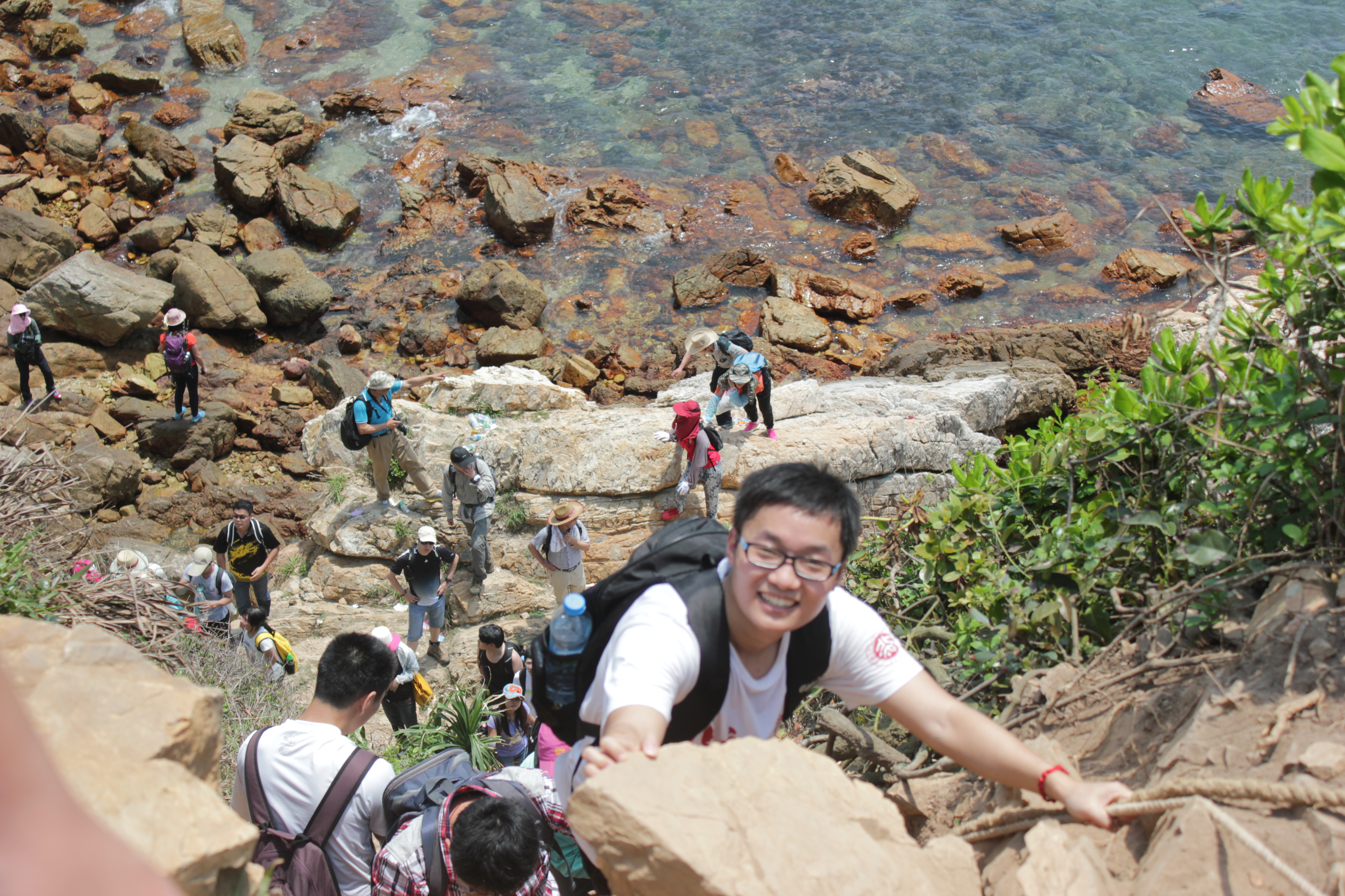 行程过半,大部队不知不觉翻过了几座小山坡,因为阳光毒辣,有些许同学已经开始感到头晕。不过这并没有影响队伍的前进步伐。同学们不知是被眼前的美景所麻醉,还是被终点的沙滩所魂牵,个个都干劲十足,豪无懈怠退缩之意。