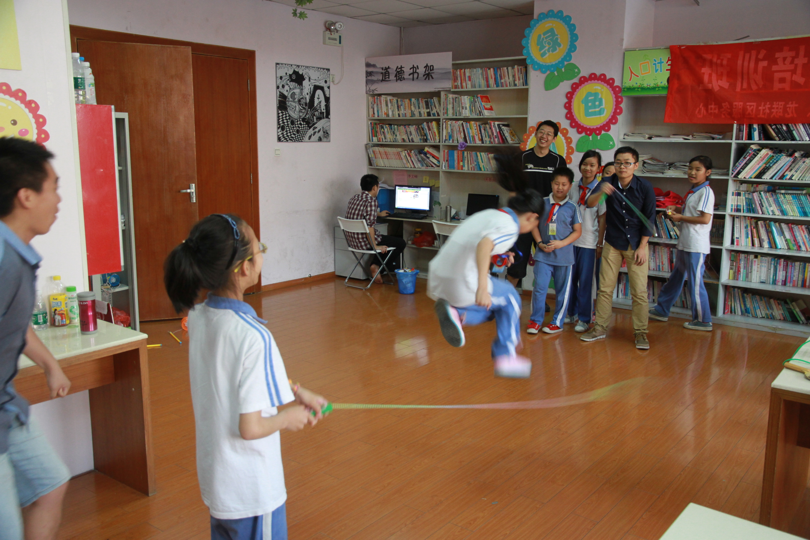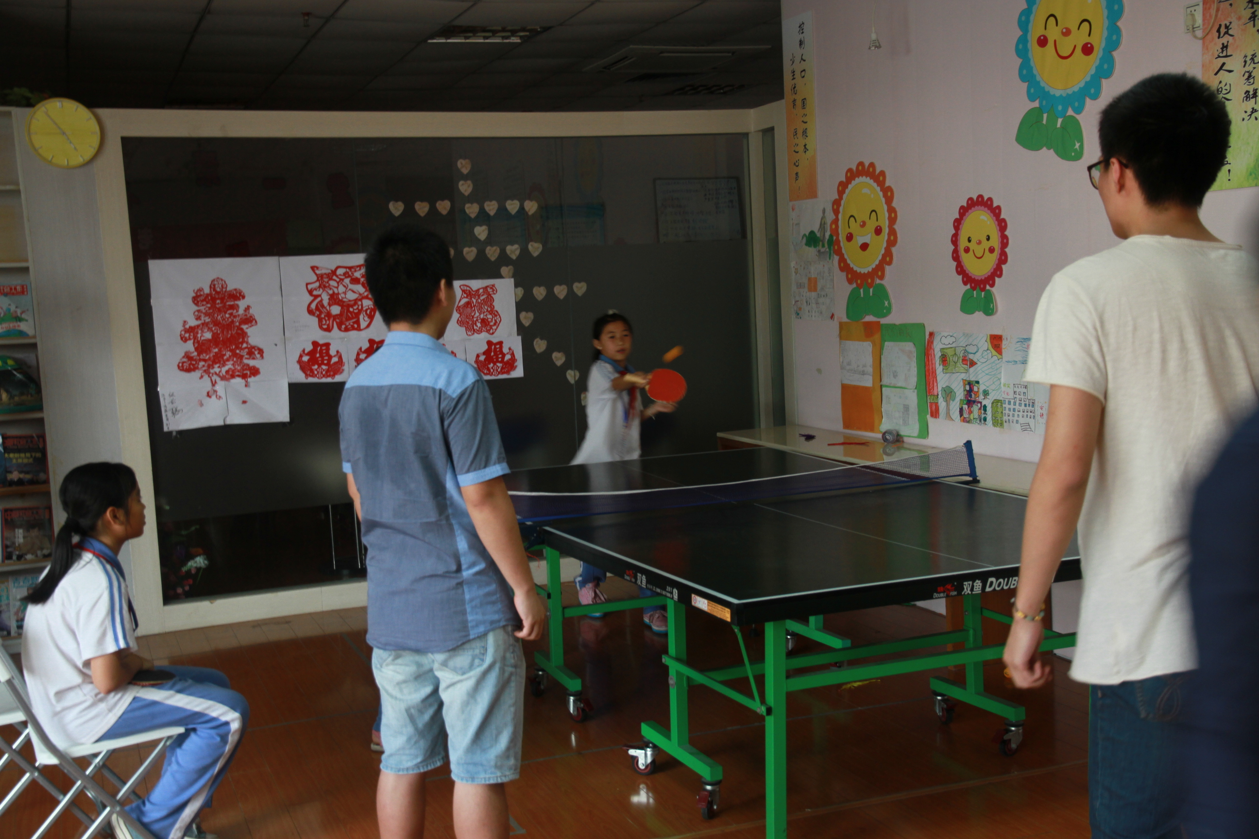 活动进行的很顺利,小孩子们在志愿者的陪同下玩的非常的开心。不论是在乒乓球娱乐赛中的扣球手法,还是在棋艺大比拼中小孩子们展示出的过人天赋,或是在踢毽子时那灵动的步伐,或是在跳大绳中的大家之间天衣无缝的配合,又或是在“你来比划我来猜”中表显露出的默契与智慧都让我们在场的每个志愿者都觉得不可思议。
