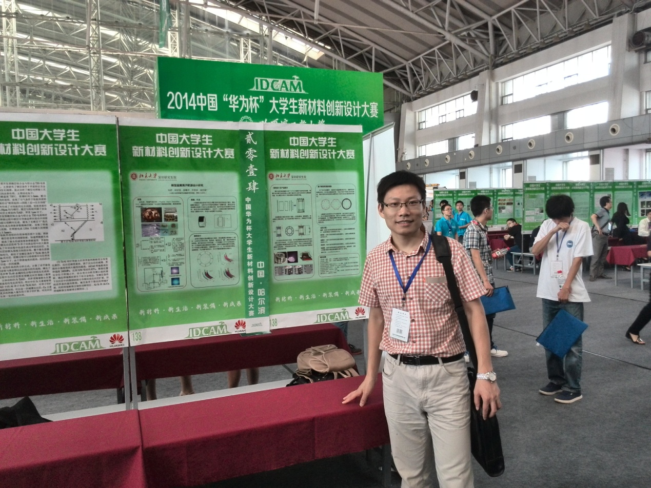 2014级博士研究生肖舒和2013级硕士研究生林钦贤、胡博洋、乔荣学等同学组成的科技创新团队,在吴忠振老师(特聘研究员)和潘锋教授的指导下,参加2014(首届)“华为杯”中国大学生新材料创新设计大赛。团队成员面对实力雄厚的高年级博士生的巨大压力,勇于挑战和创新,他们的研究创新成果《高密度高能量新型金属离子靶源设计研究》,在“博士生组”成果展示中脱颖而出,荣获二等奖。同时,该研究成果应邀参加了第三届中国国际新材料博览会,吸引了众多参观者。