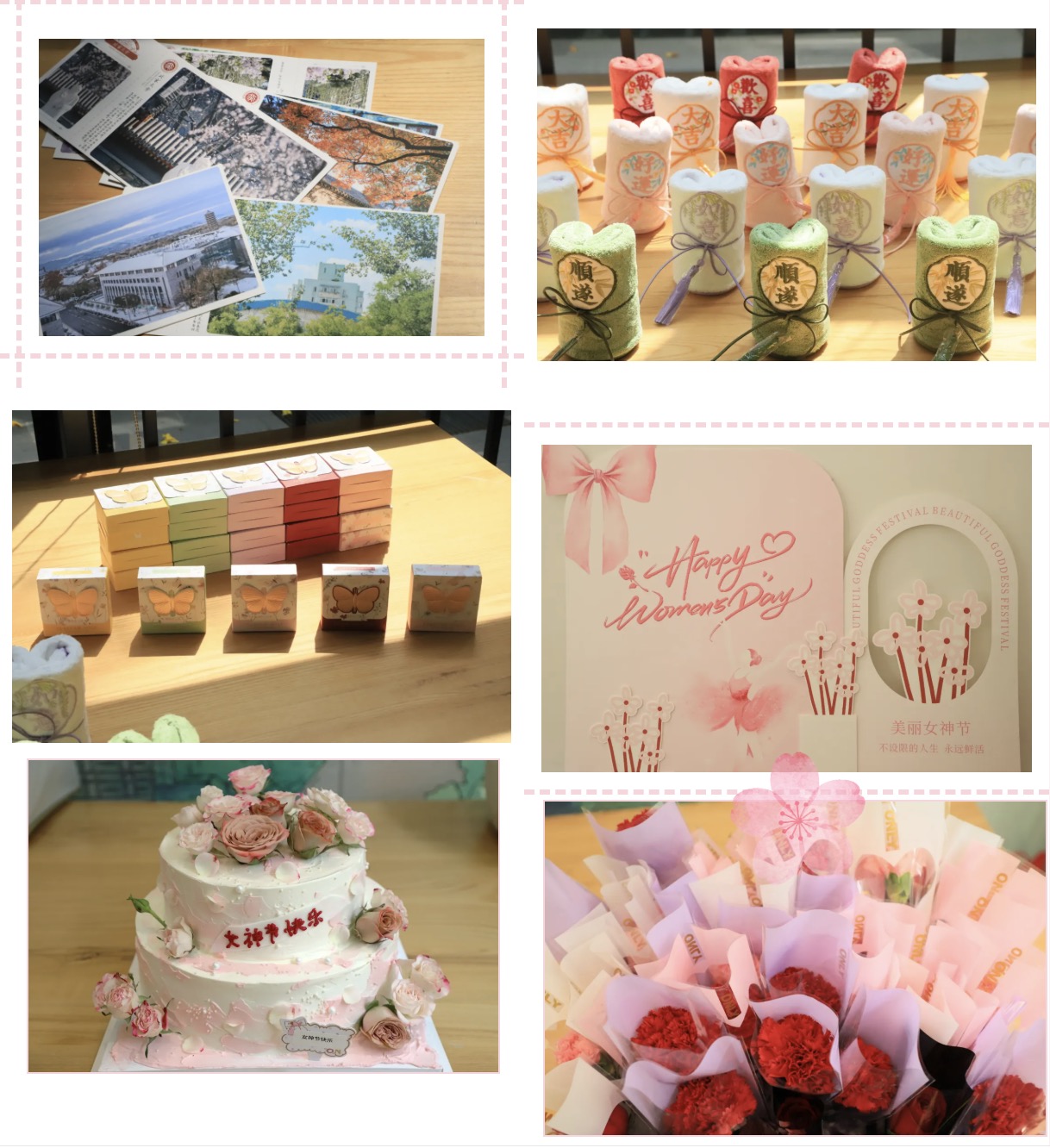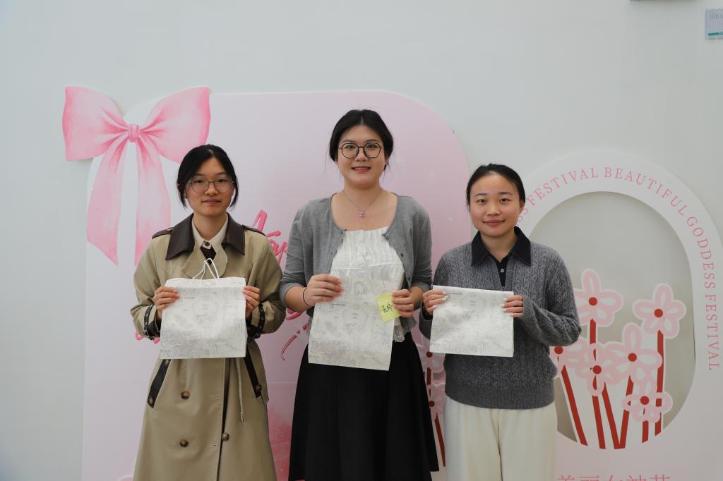 为致敬每一位在科研与求知路上笃行不怠的女性师生,研究生会悉心筹备了蛋糕分享、趣味互动、幸运抽奖等环节,并精心布置主题拍照打卡区,定格美好瞬间。与此同时,每一位到场的女性师生都收到了一份满载学院心意的专属伴手礼——精致鲜花、亲肤毛巾、香氛皂,以物寄情,传递诚挚祝福。