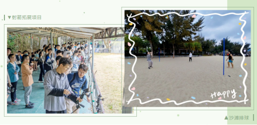 射箭体验活动,“站立、握弓、搭箭、举弓、拉弓、瞄准、撒放、收势”,现场教练提供技术指导,所有师生参与其中。体验了射箭运动紧张刺激的独特魅力,进一步提升了国防意识和纪律意识。还进行了沙滩排球活动,大家在沙滩上起跳扣杀,点燃激情,和队友协作取得胜利,提升了团队协作意识。