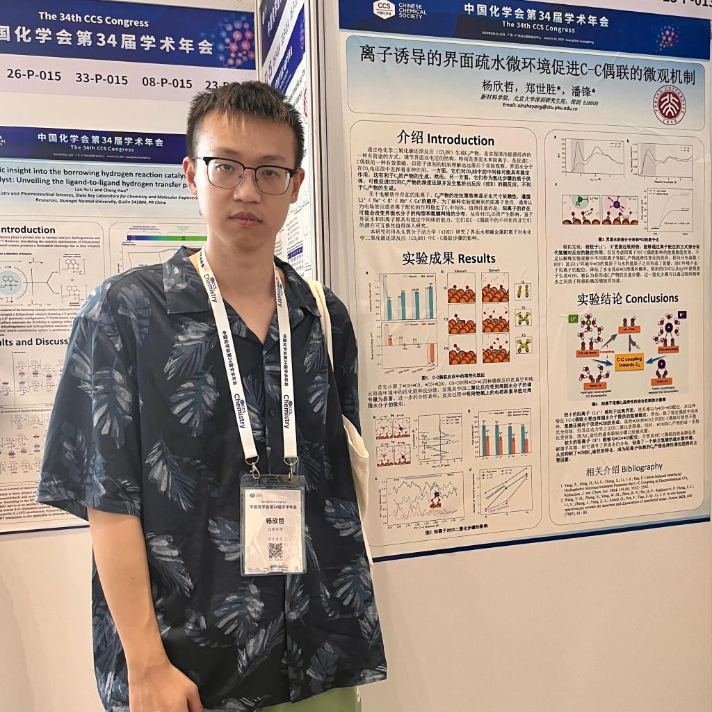 在科研上,我聚焦于电化学反应的理论模拟研究,致力于从微观机制层面解析清洁能源高效利用的关键科学问题,有望为优化电催化二氧化碳还原反应提供理论指导,紧密结合国家“双碳”战略目标。由于我本科阶段就参与过相关课题研究,具有一定基础,因此来到北大读研后,导师安排我延续这一方向进行深入研究。我个人也对这一方向很感兴趣,因为这方面的研究不仅涉及到底层的物理和化学原理,也能与当下比较热门的新能源技术相结合。
