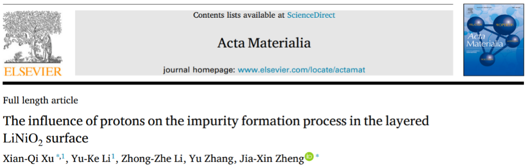学院郑家新/许贤祺团队新进展:质子对层状LiNiO2表面杂质形成过程的影响