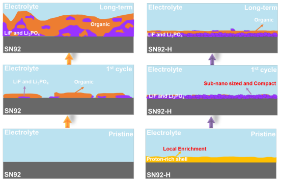 学院潘锋团队基于富质子界面的原位转化形成致密无机壳层开发了高性能的三元锂电池正极材料