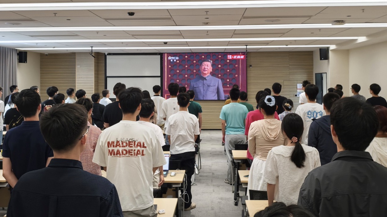 新番 全体师生党员观看纪念中国人民抗日战争暨世界反法西斯战争胜利80周年大会